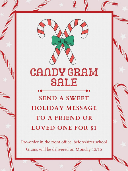 All Candy Cane Grams will be delivered on Monday, December 15th